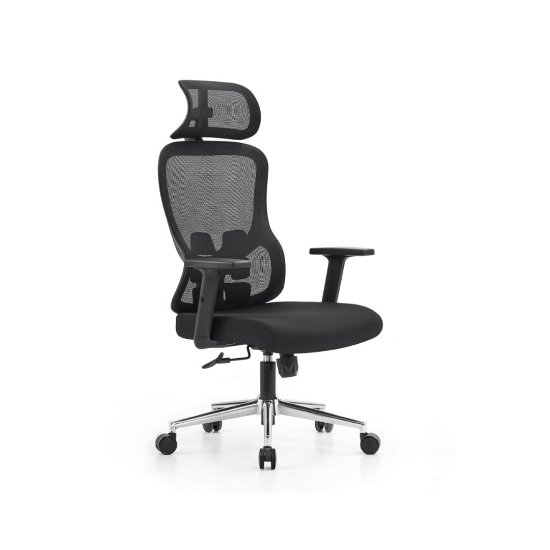 Ergonomic Design: High-back support with adjustable lumbar support and headrest promotes healthy posture and reduces strain during long hours.